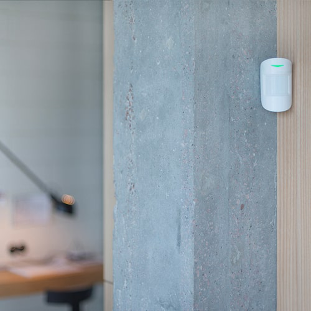 AJAX MotionProtect WH je brezžični PIR detektor gibanja, zasnovan za zanesljivo varovanje vašega doma z napredno tehnologijo in preprosto namestitvijo.